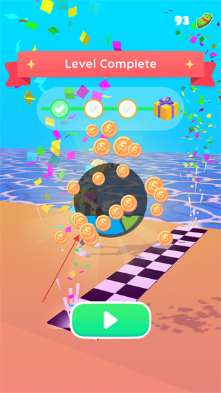 3、到達終點后,收集金幣,完成LevelComplete,獲取獎勵。