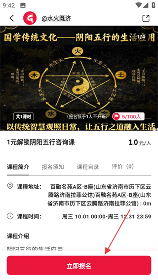 4、在課程詳情頁,點(diǎn)擊立即報(bào)名可完成課程報(bào)名操作。