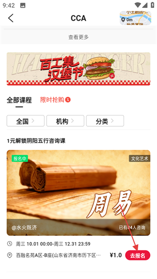 3、在課程頁面,找到心儀課程后點(diǎn)擊去報(bào)名可進(jìn)入報(bào)名流程。