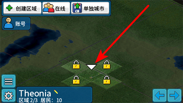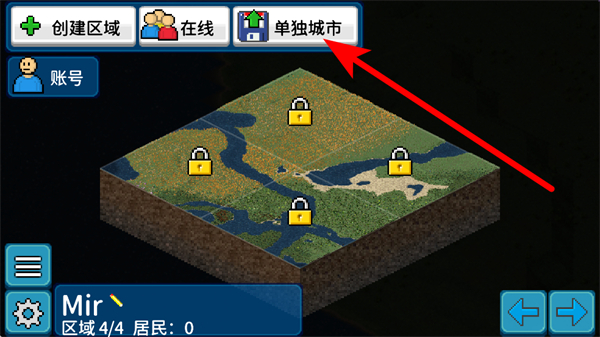 1、進(jìn)入游戲后,可選擇單獨(dú)城市模式,也可以解鎖區(qū)域,選中如下圖想要的區(qū)域點(diǎn)擊即可。