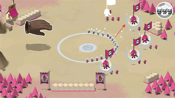 1、指揮隊(duì)伍攻擊帶有骷髏旗幟的敵方單位,展開對(duì)戰(zhàn)。