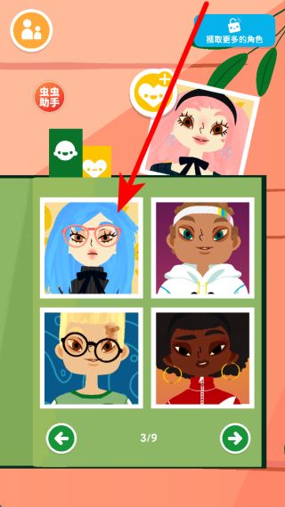 1、先選角色,在角色列表中挑選心儀角色,像藍發(fā)戴粉框眼鏡的角色就很有特色,選好后即可開啟創(chuàng)作之旅。