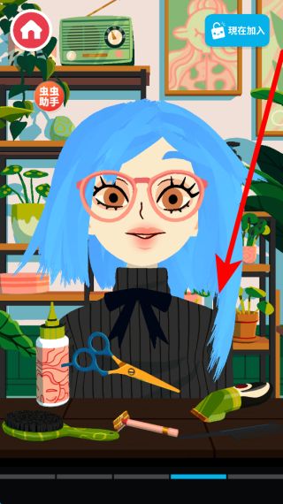 2、先設計發(fā)型,利用剪刀、染發(fā)膏等工具,可修剪頭發(fā)長度、為角色打造出個性化的發(fā)型。