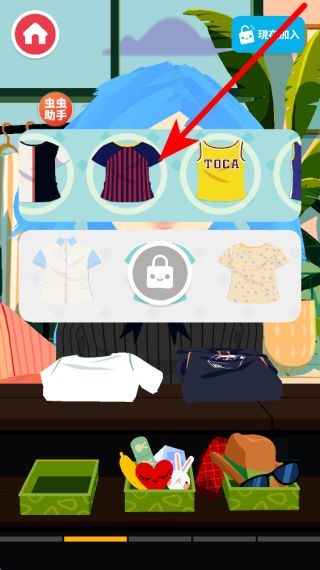 4、搭服飾,進入服飾界面,有條紋上衣、印有TOCA的黃色上衣等多種款式可選,挑選喜歡的服飾為角色穿上,打造獨特穿搭風格。
