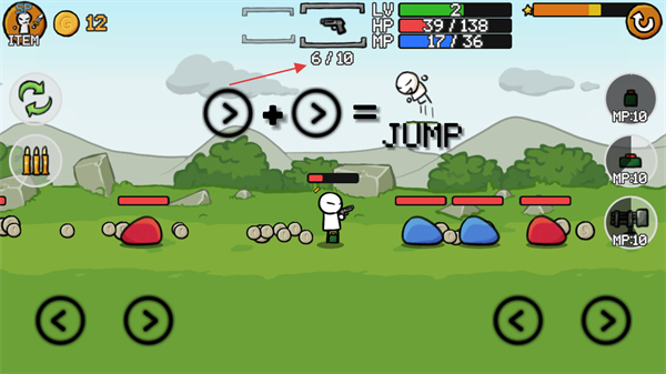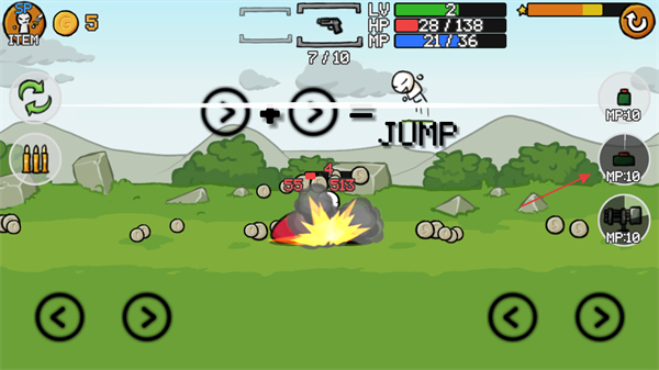操控火柴人開啟射擊冒險(xiǎn),速度非???,平衡性好,用槍械精準(zhǔn)擊殺敵人,搭配獨(dú)特技能提升戰(zhàn)力,需時(shí)刻關(guān)注HP和MP,HP歸零則挑戰(zhàn)失敗。