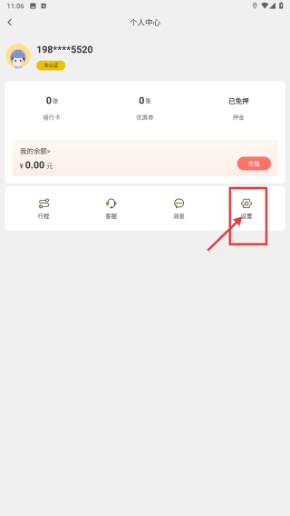2、在個(gè)人功能頁(yè)面,點(diǎn)擊設(shè)置選項(xiàng),進(jìn)入設(shè)置功能列表。