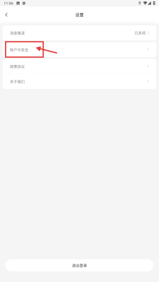 3、在設(shè)置頁(yè)面,點(diǎn)擊賬戶與安全選項(xiàng),進(jìn)入賬號(hào)安全設(shè)置頁(yè)面。