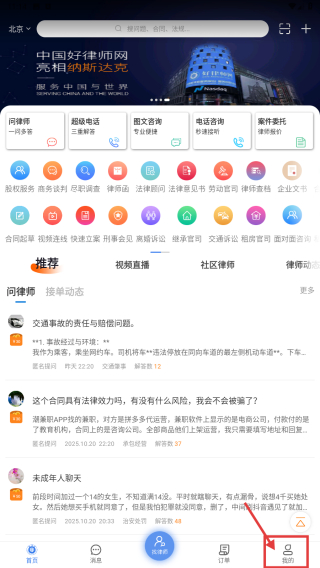 1、打開(kāi)好律師網(wǎng)應(yīng)用,點(diǎn)擊底部我的選項(xiàng),進(jìn)入個(gè)人中心頁(yè)面。