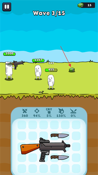 3、戰(zhàn)斗時收集綠色鈔票,用于后續(xù)資源積累。