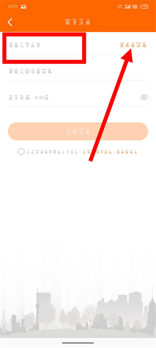 5、輸入收到的驗(yàn)證碼,設(shè)置登錄密碼,勾選相關(guān)協(xié)議后,點(diǎn)擊立即注冊,完成注冊。