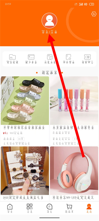 2、在個(gè)人頁面中,點(diǎn)擊登錄注冊區(qū)域,進(jìn)入登錄頁面。