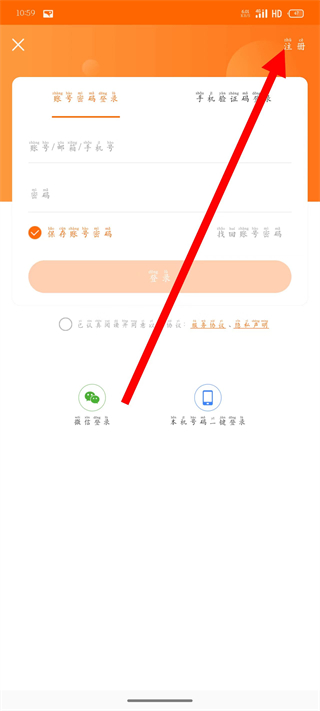 3、進(jìn)入登錄頁面后,點(diǎn)擊右上角的注冊,進(jìn)入注冊頁面。