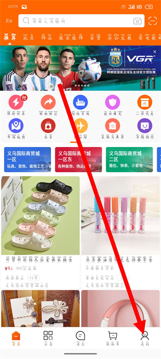 1、打開義烏購批發(fā),點(diǎn)擊頁面底部的我的,進(jìn)入個(gè)人頁面。