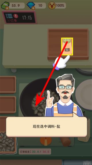 2、烹飪時(shí)需按提示選擇調(diào)料,如鹽等,精準(zhǔn)添加調(diào)料后翻炒菜品,確保菜品制作符合要求,提升顧客滿意度。
