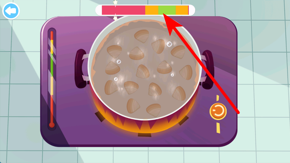 3、做菜時需關(guān)注鍋內(nèi)食材的烹飪進(jìn)度條,在綠色區(qū)域時完成烹飪,可做出美味菜品,獲得顧客高評價,提升餐廳口碑。