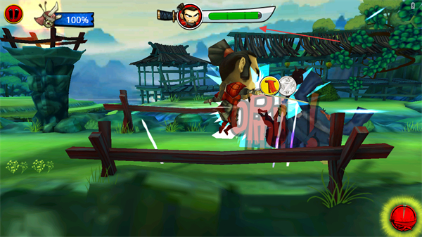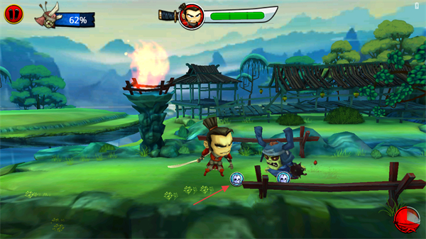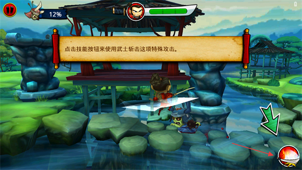 3、點(diǎn)擊技能按鈕來使用武士斬?fù)暨@項(xiàng)特殊攻擊,發(fā)動特殊技能增強(qiáng)戰(zhàn)力。