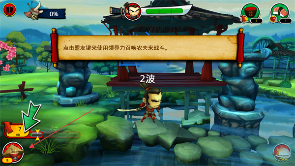 3、按照提示點(diǎn)擊盟友鍵來使用領(lǐng)導(dǎo)力召喚農(nóng)夫來戰(zhàn)斗,召喚盟友助力戰(zhàn)斗。