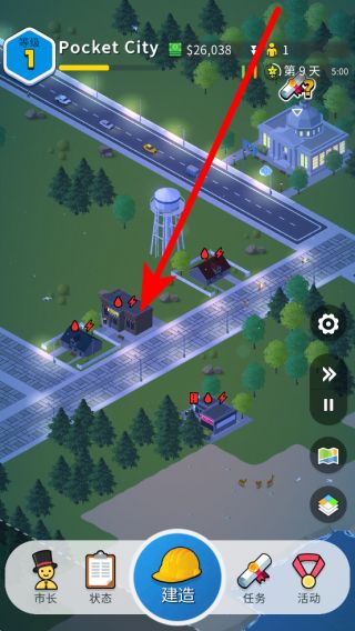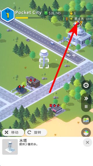 2、關(guān)注建筑的水電需求,當(dāng)建筑出現(xiàn)缺水缺電標(biāo)識時,需建造水塔和發(fā)電廠,水塔提供少量水,發(fā)電廠提供少量電力但制造污染,滿足建筑的水電供應(yīng)。