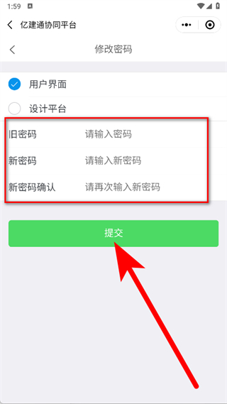 3、選擇對(duì)應(yīng)的平臺(tái),依次輸入舊密碼、新密碼、新密碼確認(rèn),完成后點(diǎn)擊提交按鈕,完成修改密碼。