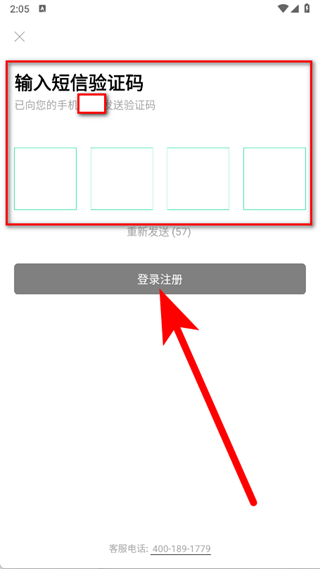 4、輸入收到的短信驗(yàn)證碼,點(diǎn)擊登錄注冊按鈕,完成注冊登錄。