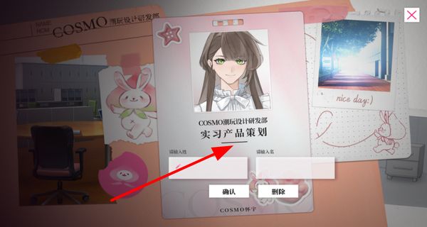 1、進(jìn)入游戲先創(chuàng)建角色并取名,確定身份后開啟職場(chǎng)戀愛冒險(xiǎn),體驗(yàn)不同的劇情發(fā)展。