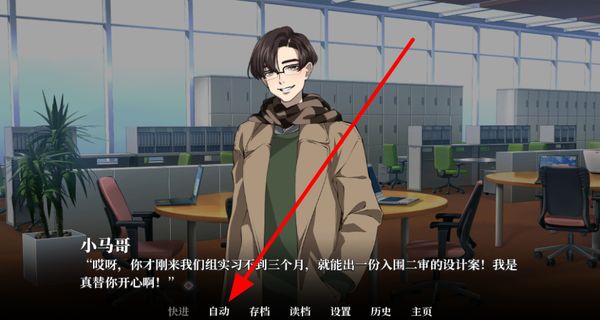 2、點(diǎn)擊自動(dòng)按鈕可自動(dòng)推進(jìn)劇情,無需手動(dòng)操作,輕松欣賞故事內(nèi)容,了解角色互動(dòng)。