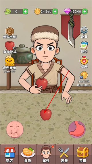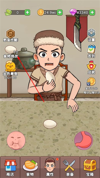 4、回到主頁(yè)面后,可以發(fā)現(xiàn)現(xiàn)在吃的食物更新了,可繼續(xù)選擇其他食物進(jìn)行挑戰(zhàn),不斷更新食物種類,推動(dòng)角色進(jìn)化。