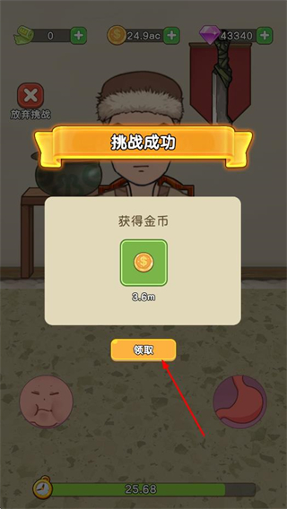 3、成功完成食物挑戰(zhàn)后,會(huì)彈出挑戰(zhàn)成功界面,點(diǎn)擊領(lǐng)取按鈕,可獲得金幣獎(jiǎng)勵(lì),同時(shí)完成該食物的更新。