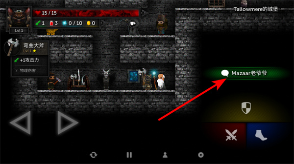 2、在地牢中,遇到Mazaar老爺爺時,可與其交互,同時關(guān)注角色裝備的彎曲大斧,其+1攻擊力屬性能提升初期戰(zhàn)斗能力,助力地牢探索。