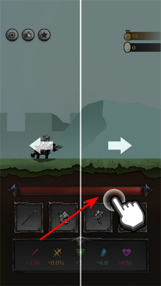 1、操控騎士時,利用左右方向箭頭移動探索地圖,同時留意底部交互區(qū)域,點擊可觸發(fā)技能或道具使用,靈活移動完成冒險。