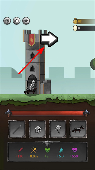 2、遇到塔樓建筑時,按照箭頭指引進入,該建筑可能涉及關卡挑戰(zhàn)或特殊任務,探索可獲取資源與獎勵,推動游戲進程。