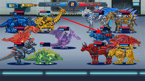 2、機(jī)械對(duì)戰(zhàn)時(shí),留意藍(lán)色機(jī)械獸的傷害輸出和雙方戰(zhàn)力值動(dòng)態(tài),合理調(diào)整出戰(zhàn)單位組合,利用屬性克提升戰(zhàn)斗效率。