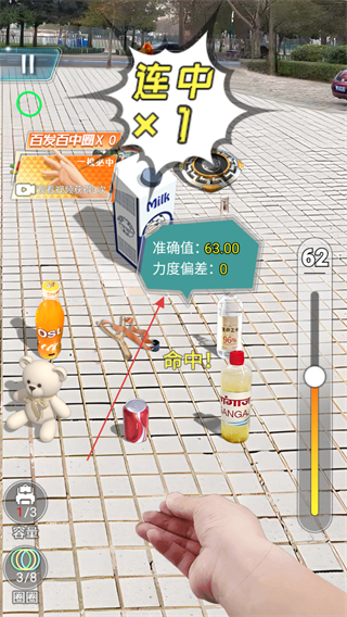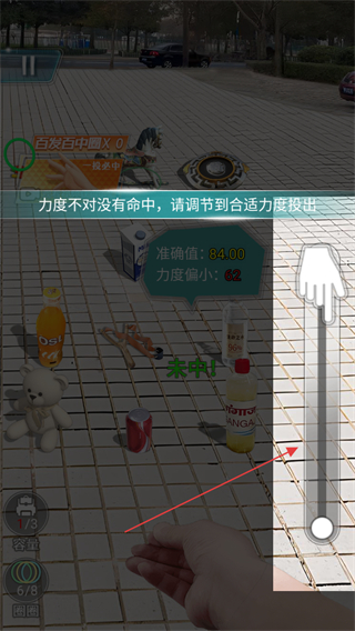 2、根據(jù)提示調(diào)節(jié)力度值,避免力度偏小,調(diào)整至合適力度投圈以命中物品。