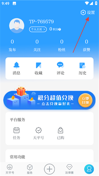 2、在個(gè)人中心頁面,點(diǎn)擊右上角設(shè)置可進(jìn)入設(shè)置頁面。