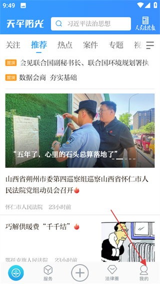 1、打開天平陽光,點(diǎn)擊頁面右下角我的,可進(jìn)入個(gè)人中心頁面。