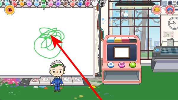 1、在繪圖區(qū)的大白板上用彩色畫筆自由繪制圖案,也能在電腦上設(shè)計(jì)圖形,為印刷準(zhǔn)備創(chuàng)意素材。