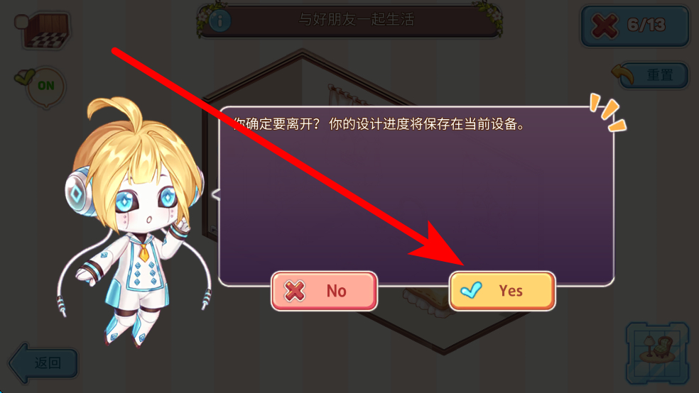 3、設(shè)計(jì)過(guò)程中若要離開(kāi),點(diǎn)擊返回會(huì)彈出確認(rèn)框,選擇Yes即可保存當(dāng)前設(shè)計(jì)進(jìn)度,方便下次繼續(xù)設(shè)計(jì)。