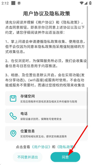 1、在用戶協(xié)議及隱私政策彈窗中,點擊同意,進入首頁。