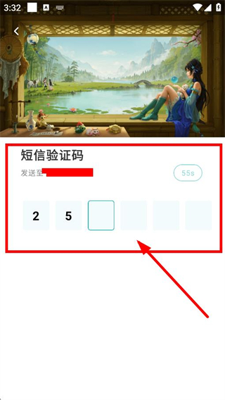 4、在驗證碼輸入頁面,輸入收到的短信驗證碼,完成賬號登錄。