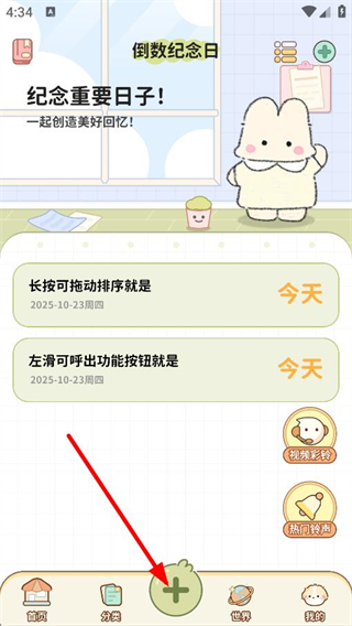 2、在APP首頁,點(diǎn)擊底部加號(hào)圖標(biāo),進(jìn)入重要日子類型選擇頁面。