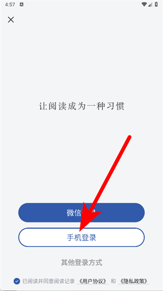 3、在登錄頁面,選擇手機(jī)登錄,進(jìn)入手機(jī)號登錄界面。