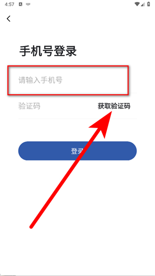 4、在手機(jī)號登錄頁面,輸入手機(jī)號,點(diǎn)擊獲取驗(yàn)證碼。