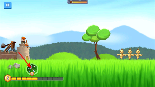 1、遇到扎堆的稻草人等集群敵人時,點擊分裂箭技能圖標(biāo)釋放技能,這是高效清敵的關(guān)鍵操作,箭矢分裂覆蓋多個目標(biāo)。