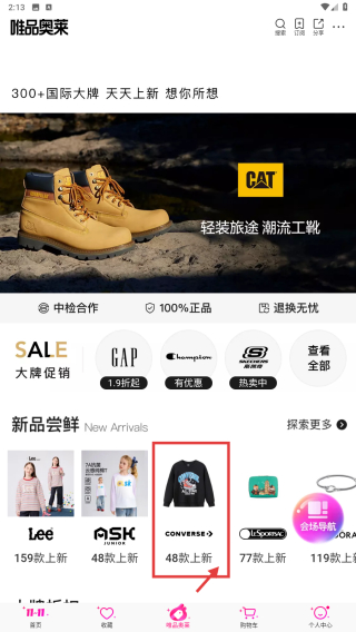 2、在唯品奧萊頁面,點(diǎn)擊CONVERSE專場入口,進(jìn)入該品牌童裝專場頁面。