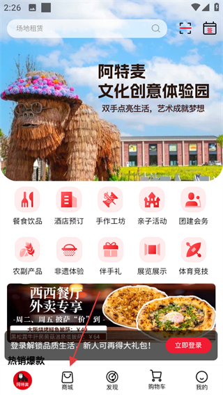 1、打開(kāi)阿特麥,點(diǎn)擊頁(yè)面底部商城,可進(jìn)入商城頁(yè)面。