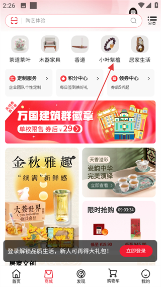 深耕小葉紫檀、茶葉、茶器、陶瓷等多個(gè)工藝美術(shù)文創(chuàng)類(lèi)目,從文玩藏品到家居服飾、美妝食味全面覆蓋,實(shí)現(xiàn)文創(chuàng)產(chǎn)品一站式采購(gòu)。