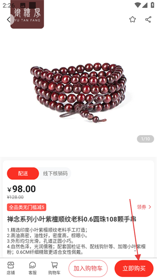 3、在小葉紫檀商品列表頁(yè)面,點(diǎn)擊心儀商品可進(jìn)入商品詳情頁(yè)面。