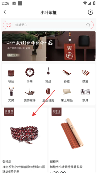 2、在商城頁(yè)面,點(diǎn)擊小葉紫檀分類(lèi),可進(jìn)入小葉紫檀商品列表頁(yè)面。