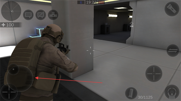 3、通過左側(cè)搖桿操控角色移動(dòng),在場(chǎng)景中走位,躲避僵尸攻擊,尋找檢查點(diǎn)。