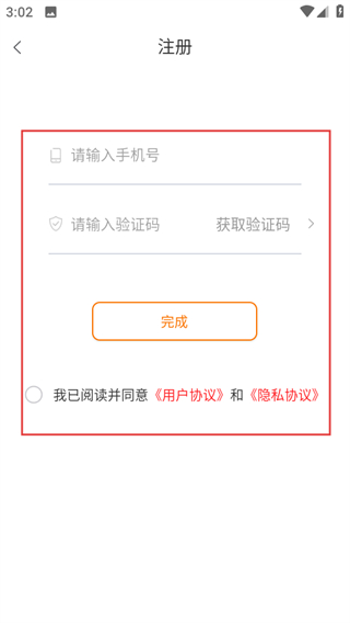 4、在注冊頁面,輸入信息,同意協(xié)議后點擊完成可完成賬號注冊。
